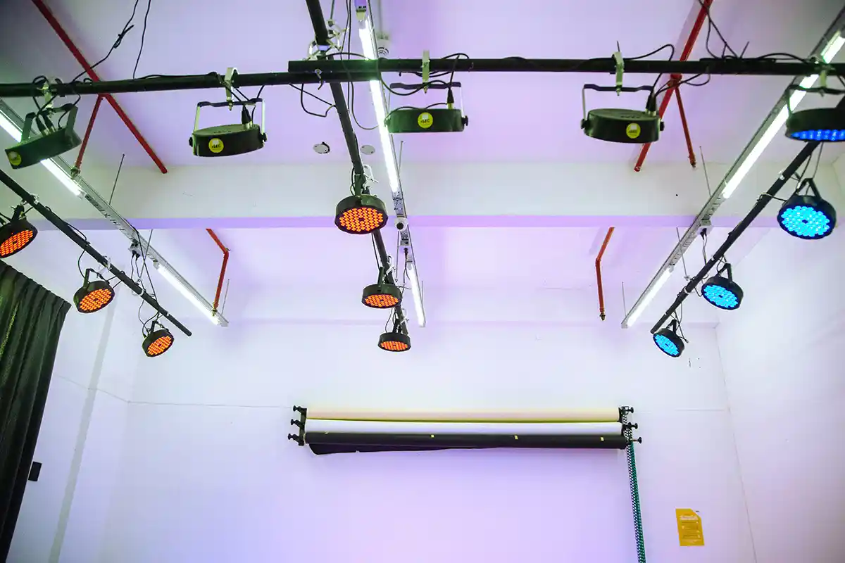 Nuestros estudios están equipados con sinfín de distintos colores, rebotadores, equipamiento de iluminación y composición, flashes profesionales para estudio, flashes de cámara, beauty dish, snoot con panal de abejas y cacerolas, softboxes de distintos tamaños, paraguas traslúcidos, plateados, dorados y blancos, trípodes de cámara e iluminación, para montaje de estudio y mesa de producto. Carpa de producto, rótulas, brazo extensor y accesorios para el montaje de equipos. Filtros de colores y Fotómetros.